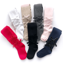 Rajstopy bawełniane z aksamitnymi kokardkami