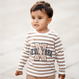 lBuzka dziecięca w biało-beżowe paski z napisem NEW YORK to idealne uzupełnienie do dresu Tymek. Wykonana z miękkiej i przyjemnej w dotyku bawełny, zapewnia komfort noszenia na co dzień. Klasyczny krój z długim rękawem sprawdzi się zarówno w chłodniejsze dni, jak i jako wygodna warstwa pod bluzę. Modny nadruk w stylu college nadaje całości sportowego charakteru, dzięki czemu bluzka doskonale komponuje się z dresami, jeansami czy legginsami.