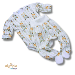 Bawełniany pajac niemowlęcy z długim rękawem, nogawki ze stopkami.