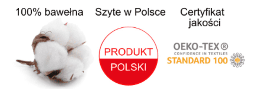 Produkty zostały uszyte z naturalnego materiału - bawełny 100%, która jest całkowicie bezpieczna dla skóry dziecka.