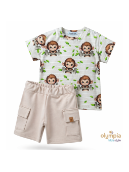 Gustowny, bawełniany zestaw z topowym printem małpek. Prosty fason z KRÓTKIM RĘKAWEM IDEALNY NA LATO. Fantastycznie połączenie wygody i modnego printu