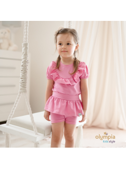 Piękny zestaw dla małych księżniczek - Bluzka z kolarkami z falbanką imituje spódniczkę.