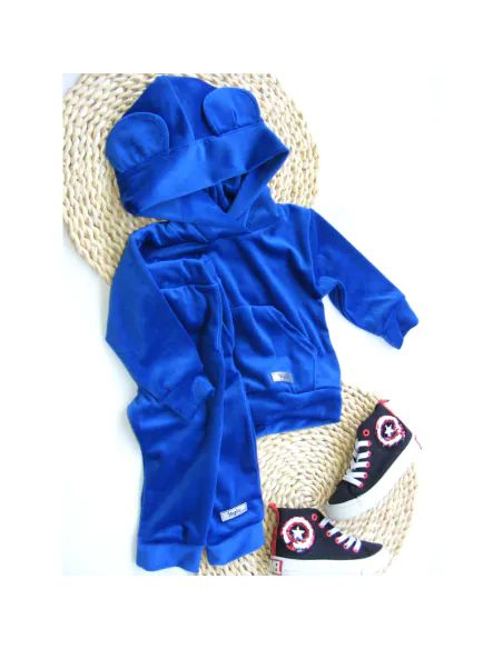 Dres welurowy z uszkami szafirowy