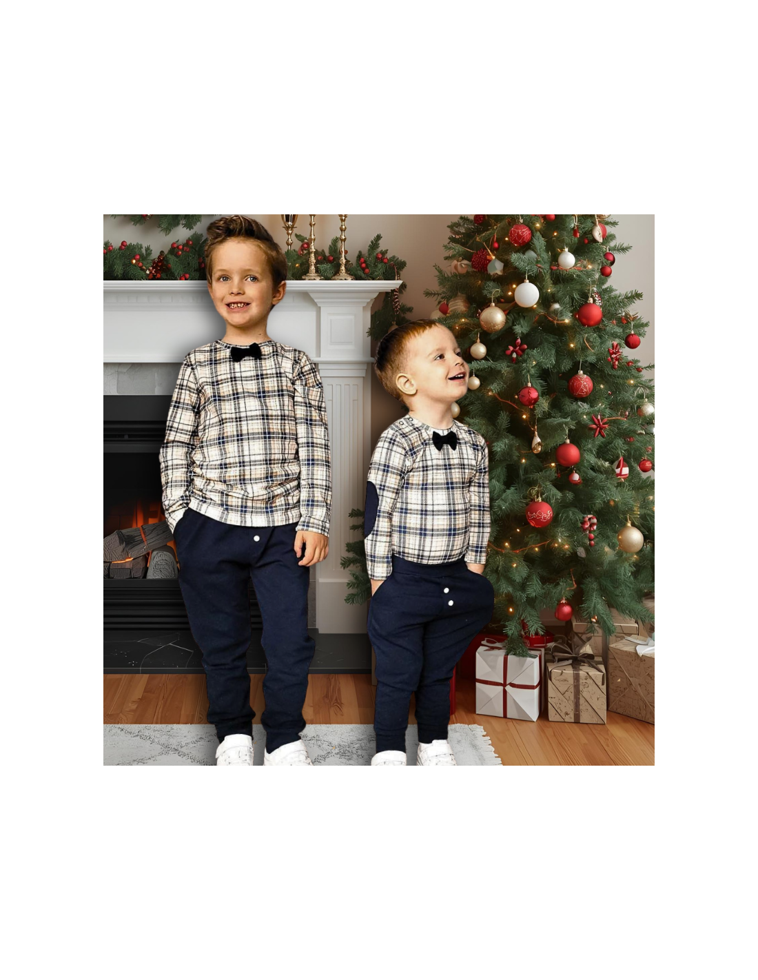 Komplet eleganckie body lub bluzka z muszką i spodenki z kolekcji świątecznej to idealna kreacja na Wigilijną kolacje czy imprezy okolicznościowe.