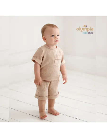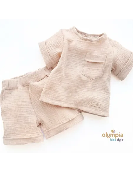 Przygotuj się na lato z naszym wyjątkowym kompletem z muślinu, który zachwyci Cię swoją lekkością i wygodą. Składający się z bluzki i krótkich spodenek z kieszeniami, ten zestaw to idealny wybór na ciepłe dni. Wykonany z przewiewnego, 100% bawełnianego materiału, zapewnia komfort nawet podczas najgorętszych dni. Jego jednolita, pastelowa kolorystyka dodaje delikatności i subtelności każdej stylizacji.