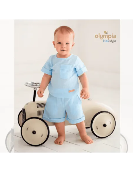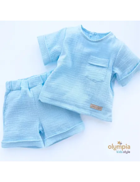 Komplet z Muślinu - Bluzka i Szorty niebieski