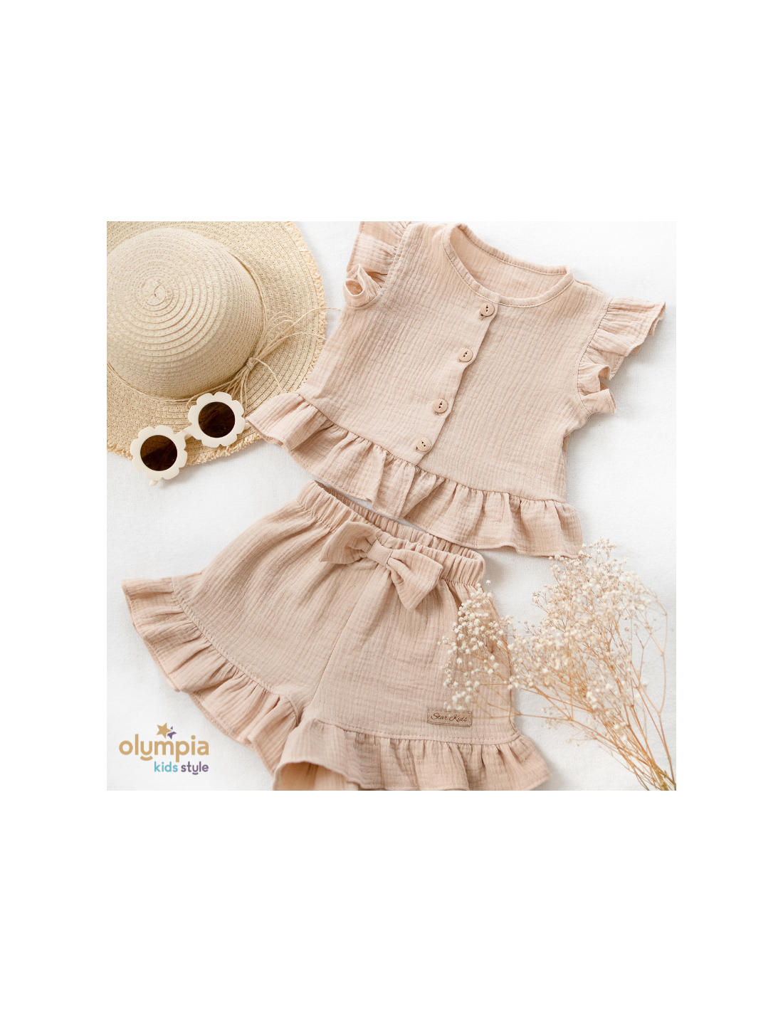 Komplet dziewczęcy z Muślinu Bluzka i Spodenki beż
