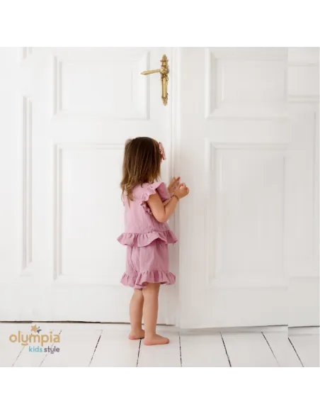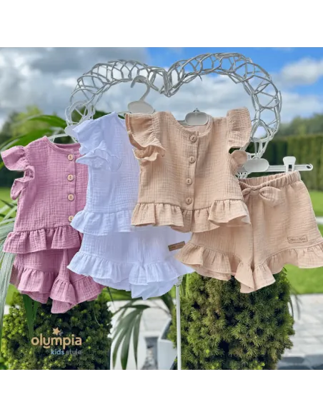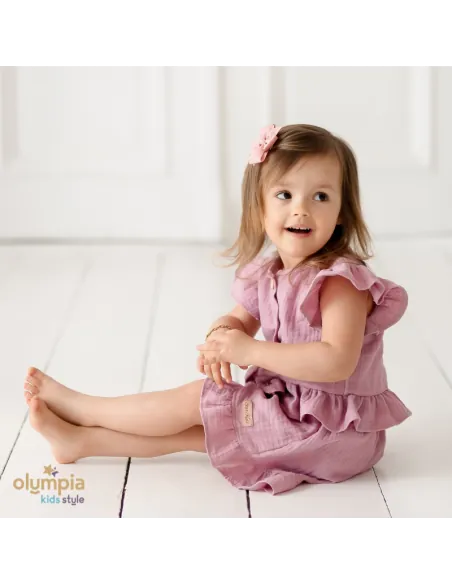 Odkryj nasz uroczy komplet z muślinu dla dziewczynki, stworzony z myślą o upalnych, letnich dniach! Wykonany z przewiewnej, delikatnej tkaniny – 100% naturalnej bawełny, gwarantuje maksymalny komfort i swobodę ruchów.