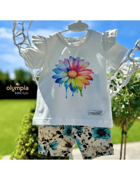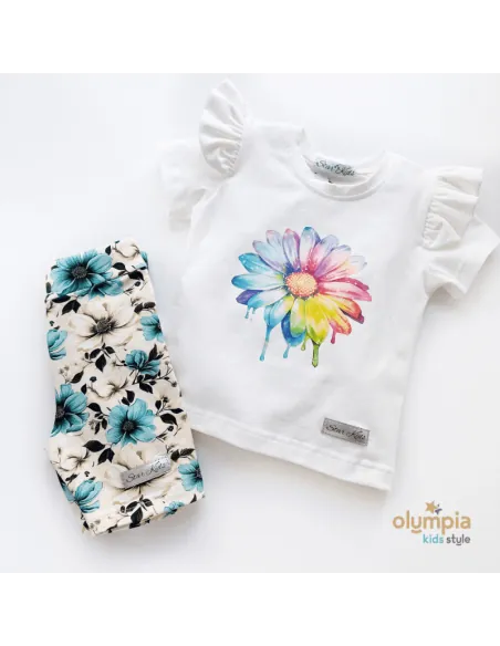 Piękny zestaw dla małych księżniczek - bluzka z kolarkami! Ta niezwykle urocza, radosna kreacja jest doskonała dla każdej małej modnisi. Bluzka o lekkim kroju zdobi kolorowy kwiat , który wyczaruje uśmiech na każdej twarzy.