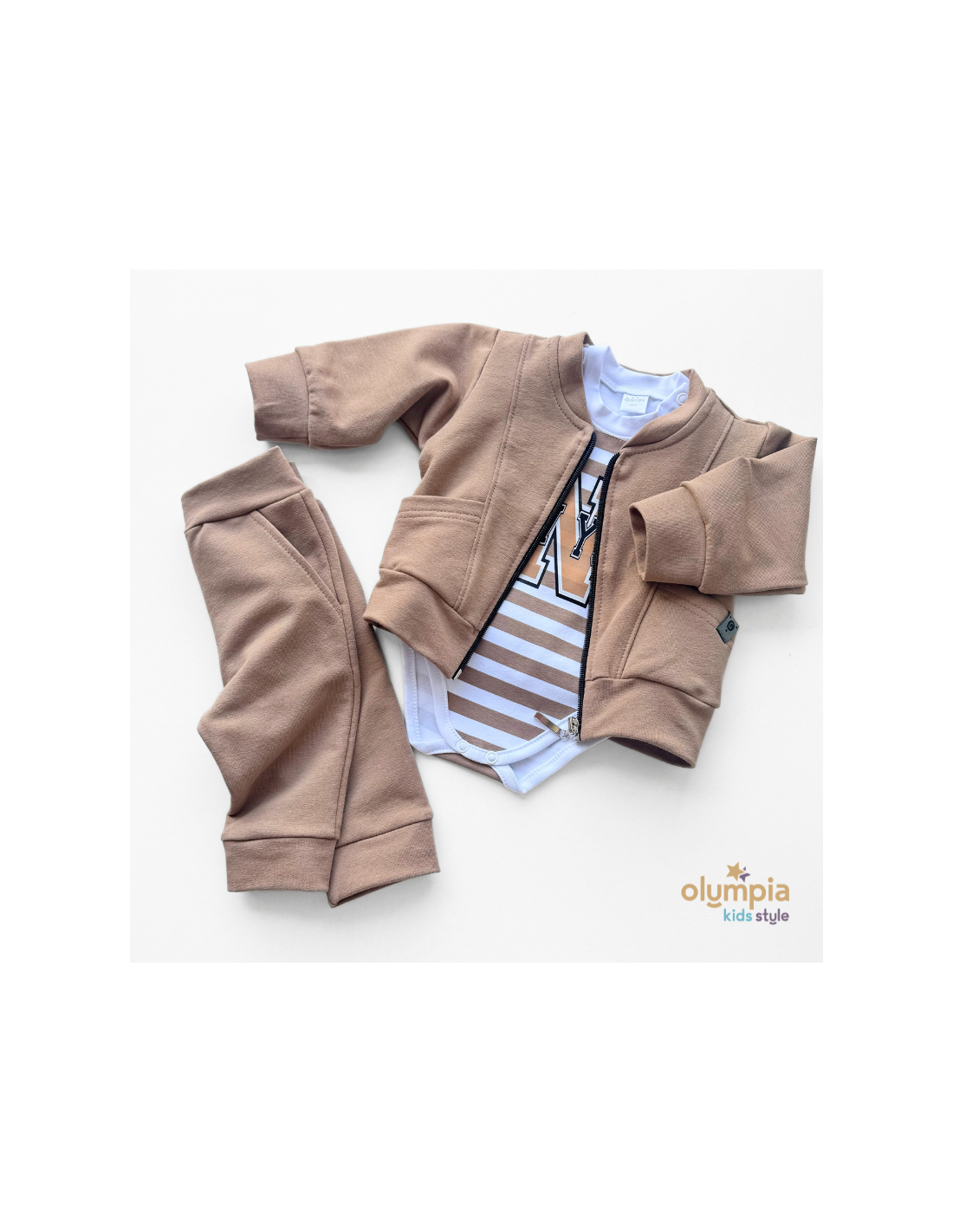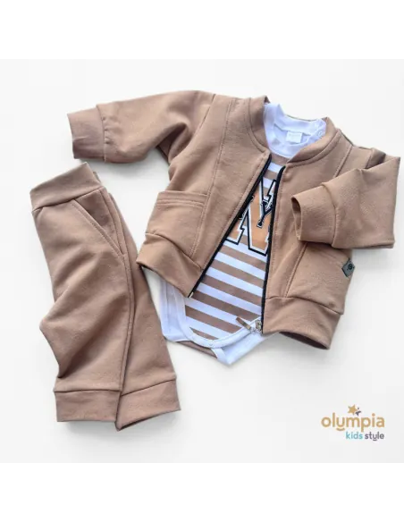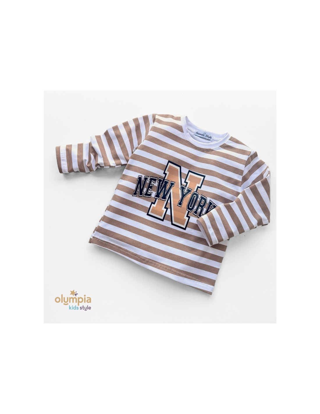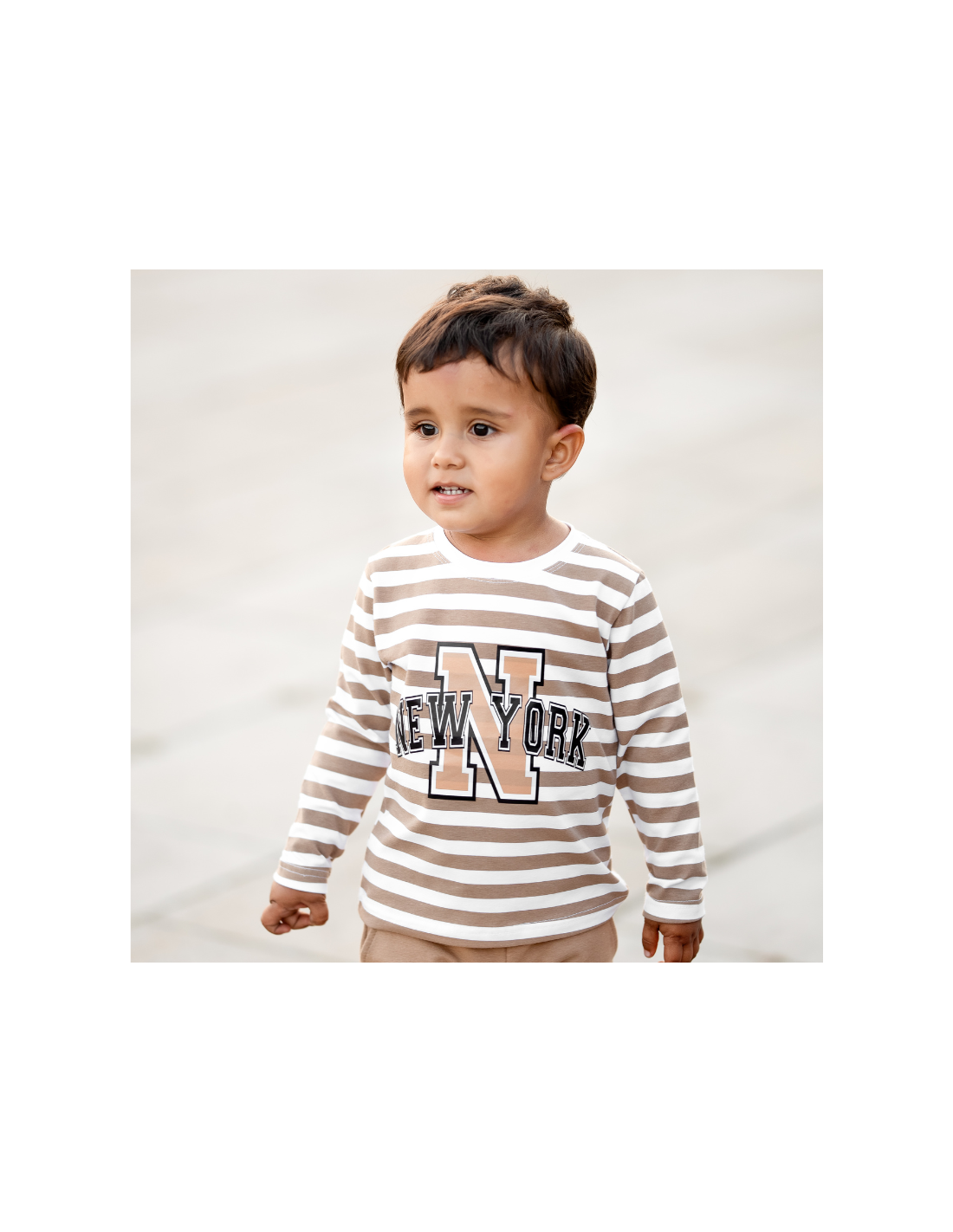 lBuzka dziecięca w biało-beżowe paski z napisem NEW YORK to idealne uzupełnienie do dresu Tymek. Wykonana z miękkiej i przyjemnej w dotyku bawełny, zapewnia komfort noszenia na co dzień. Klasyczny krój z długim rękawem sprawdzi się zarówno w chłodniejsze dni, jak i jako wygodna warstwa pod bluzę. Modny nadruk w stylu college nadaje całości sportowego charakteru, dzięki czemu bluzka doskonale komponuje się z dresami, jeansami czy legginsami.