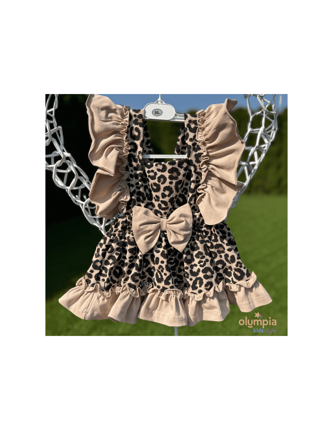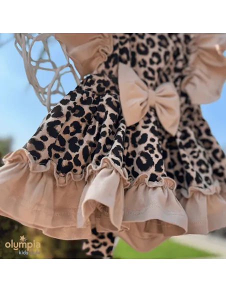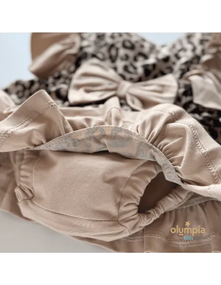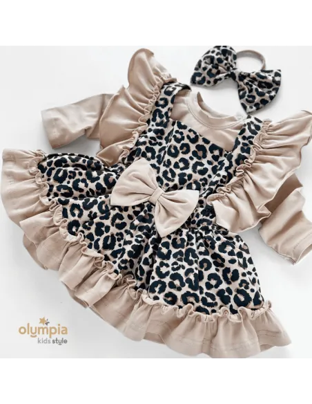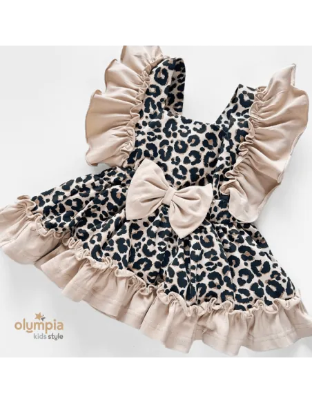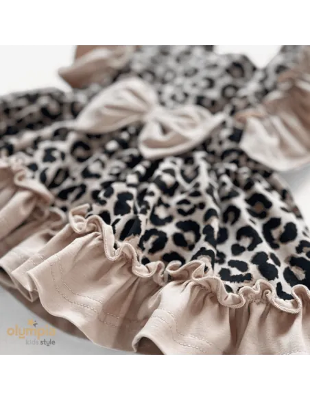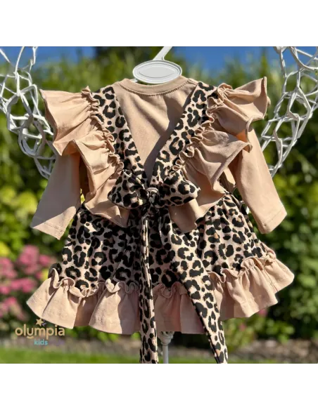 Kunsztowne bloomersy z szelkami, dostępne w naszym sklepie internetowym, emanują romantyzmem dzięki falbankom, które dodają im subtelności i zwiewności. To wyjątkowe ubranie emanuje kunsztownym wykończeniem, uwodzą falbankami o niezwykłym wdzięku. Piękny panterkowy print, malowany na ciepłym beżowym tle.