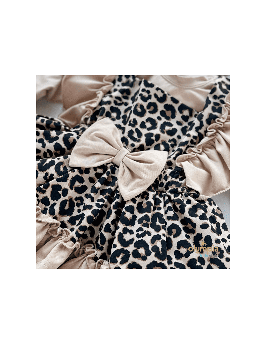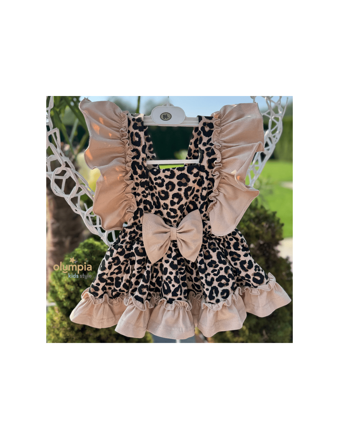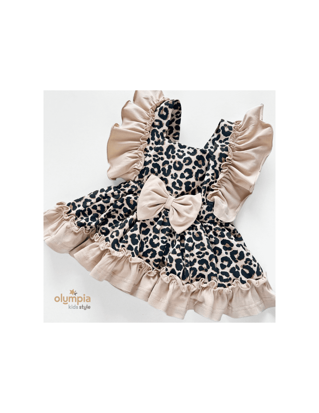 Kunsztowne bloomersy z szelkami, dostępne w naszym sklepie internetowym, emanują romantyzmem dzięki falbankom, które dodają im subtelności i zwiewności. To wyjątkowe ubranie emanuje kunsztownym wykończeniem, uwodzą falbankami o niezwykłym wdzięku. Piękny panterkowy print, malowany na ciepłym beżowym tle.