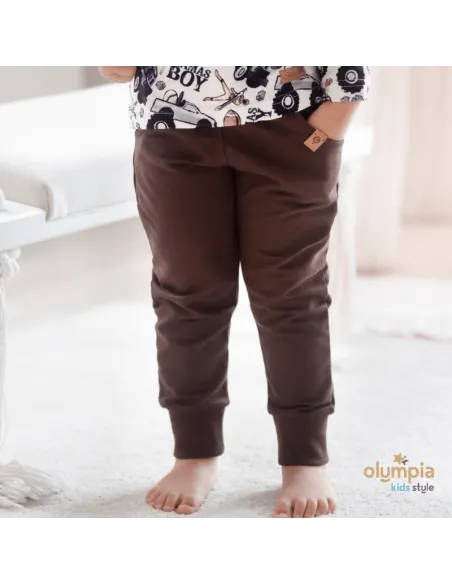 W pasie zastosowano elastyczną gumkę, luźno wszytą w tunel – dzięki temu spodnie świetnie dopasowują się do sylwetki dziecka, nie uciskają brzuszka, zapewniają pełną swobodę ruchów i maksymalny komfort noszenia przez cały dzień.