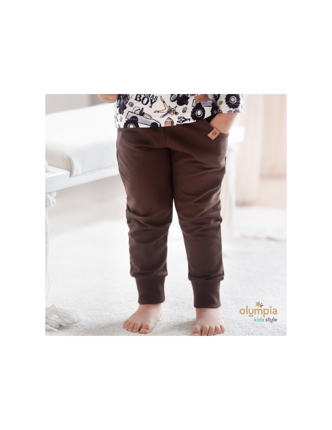W pasie zastosowano elastyczną gumkę, luźno wszytą w tunel – dzięki temu spodnie świetnie dopasowują się do sylwetki dziecka, nie uciskają brzuszka, zapewniają pełną swobodę ruchów i maksymalny komfort noszenia przez cały dzień.