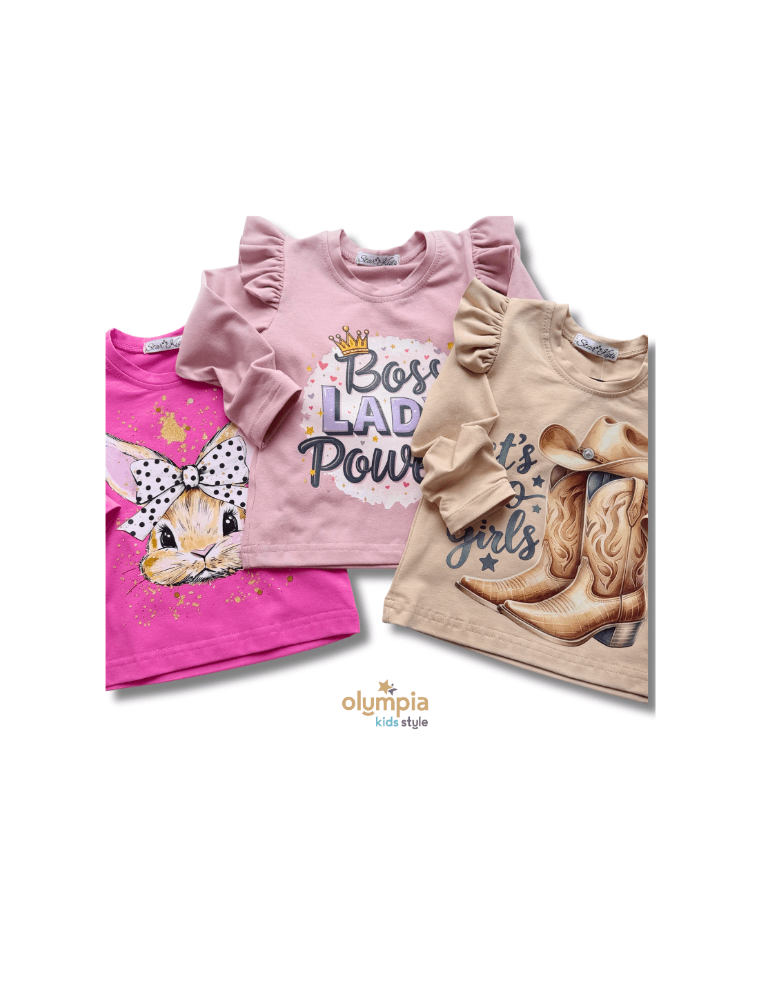 Bluzka dziecięca z falbankami KOWBOJKI beż