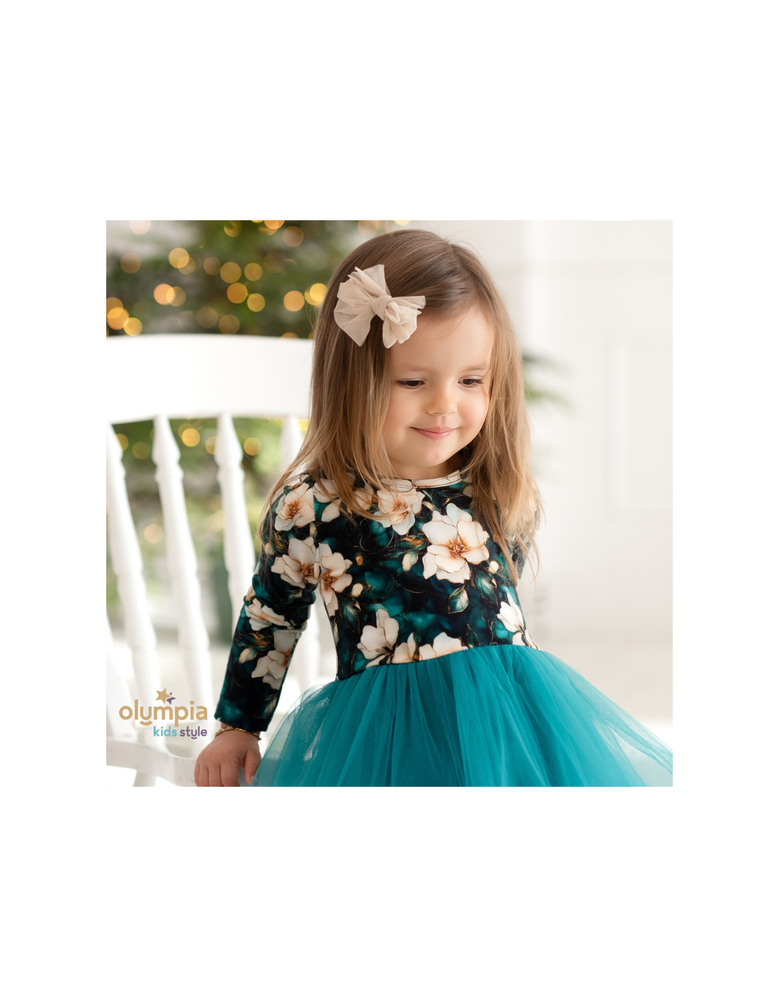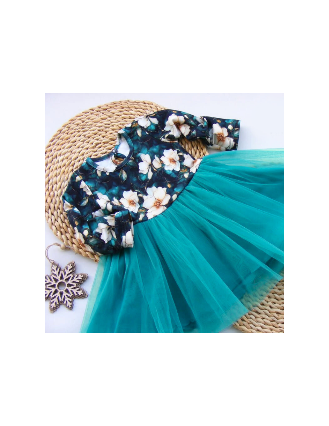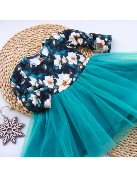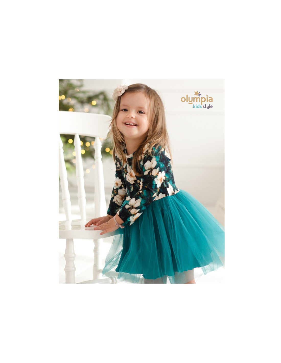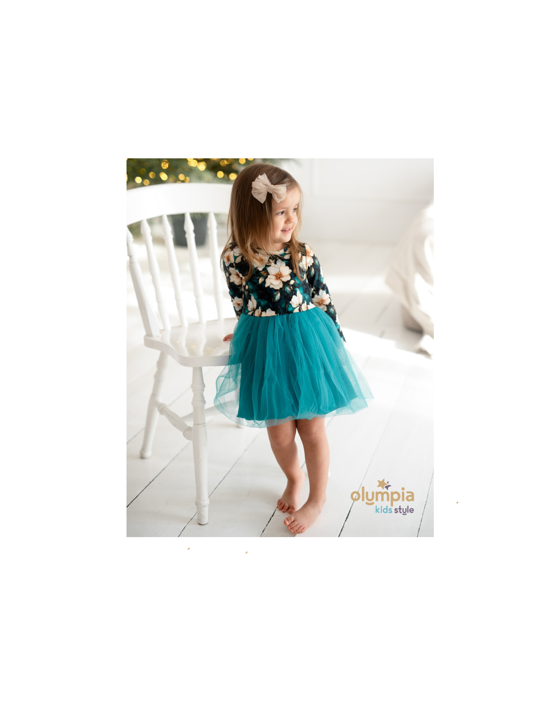 Sukienka dla dziewczynki KORONKA butelkowa zieleń
