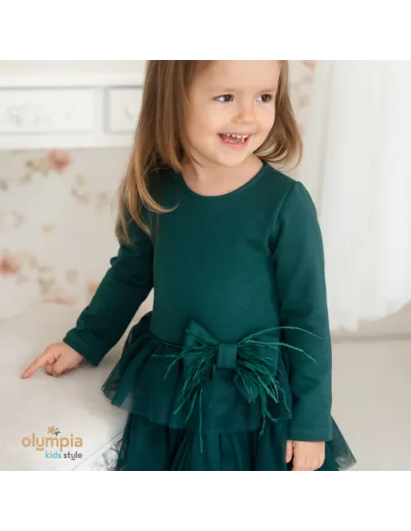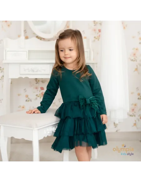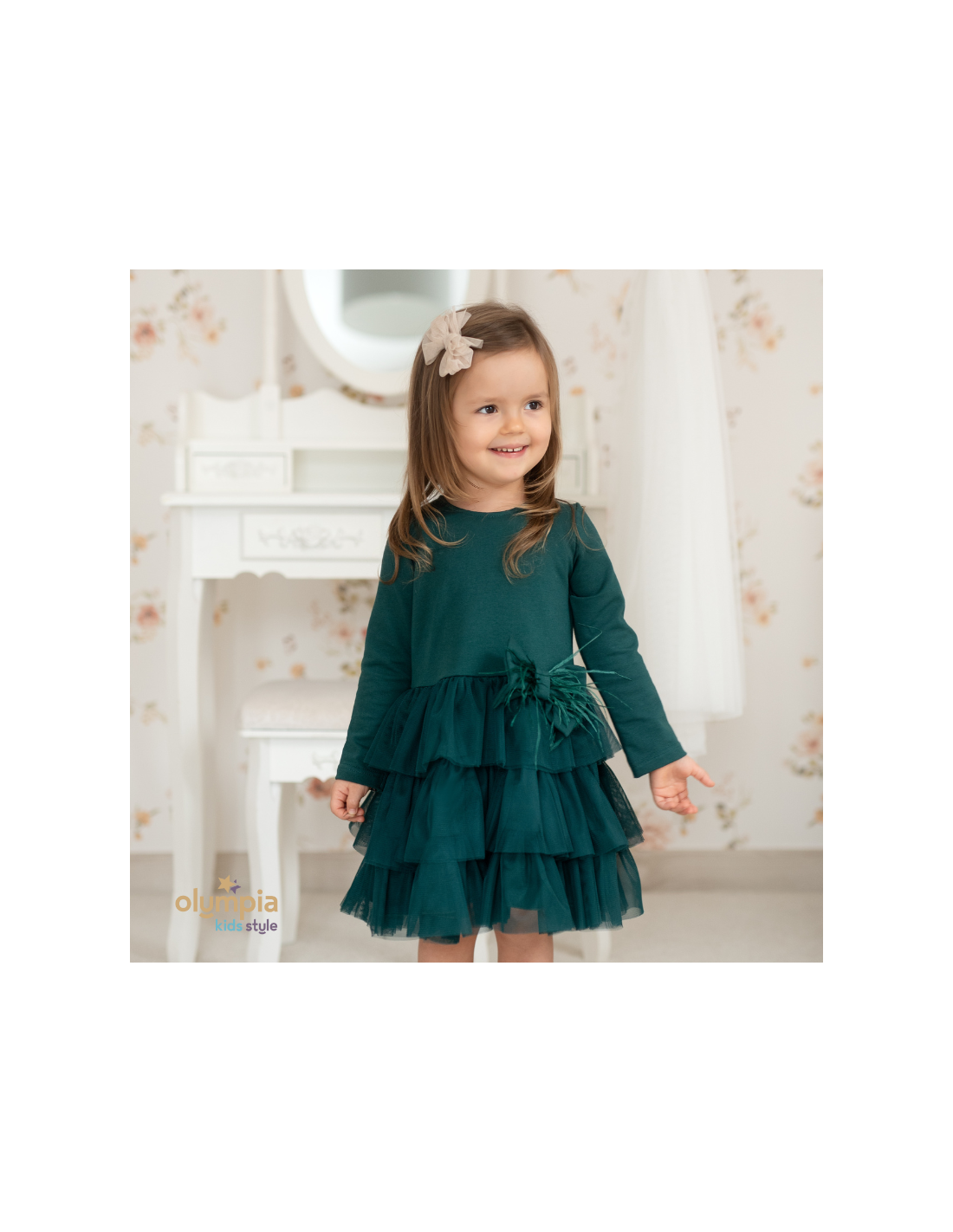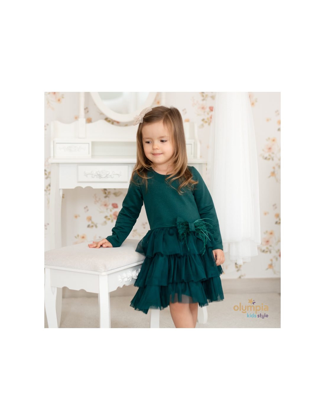 Sukienka dla dziewczynki KORONKA butelkowa zieleń