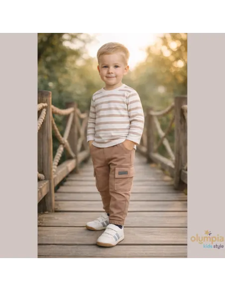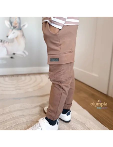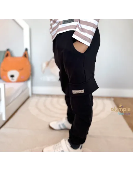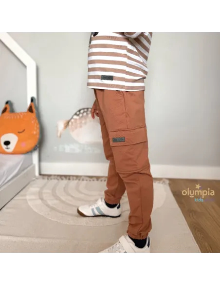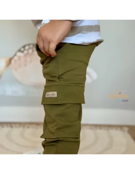 Praktyczne dwie otwarte kieszonki z przodu pozwalają schować małe skarby, a charakterystyczne kieszenie typu cargo nadają spodniom ponadczasowy, chłopięcy styl. Krój spodni sprawia, że świetnie układają się podczas noszenia i wyglądają bardzo estetycznie.