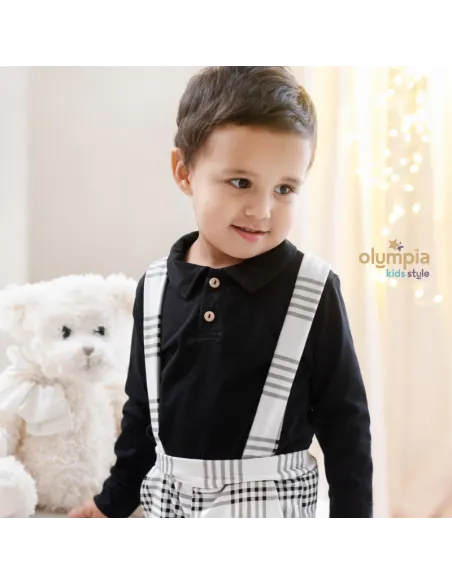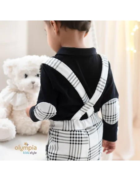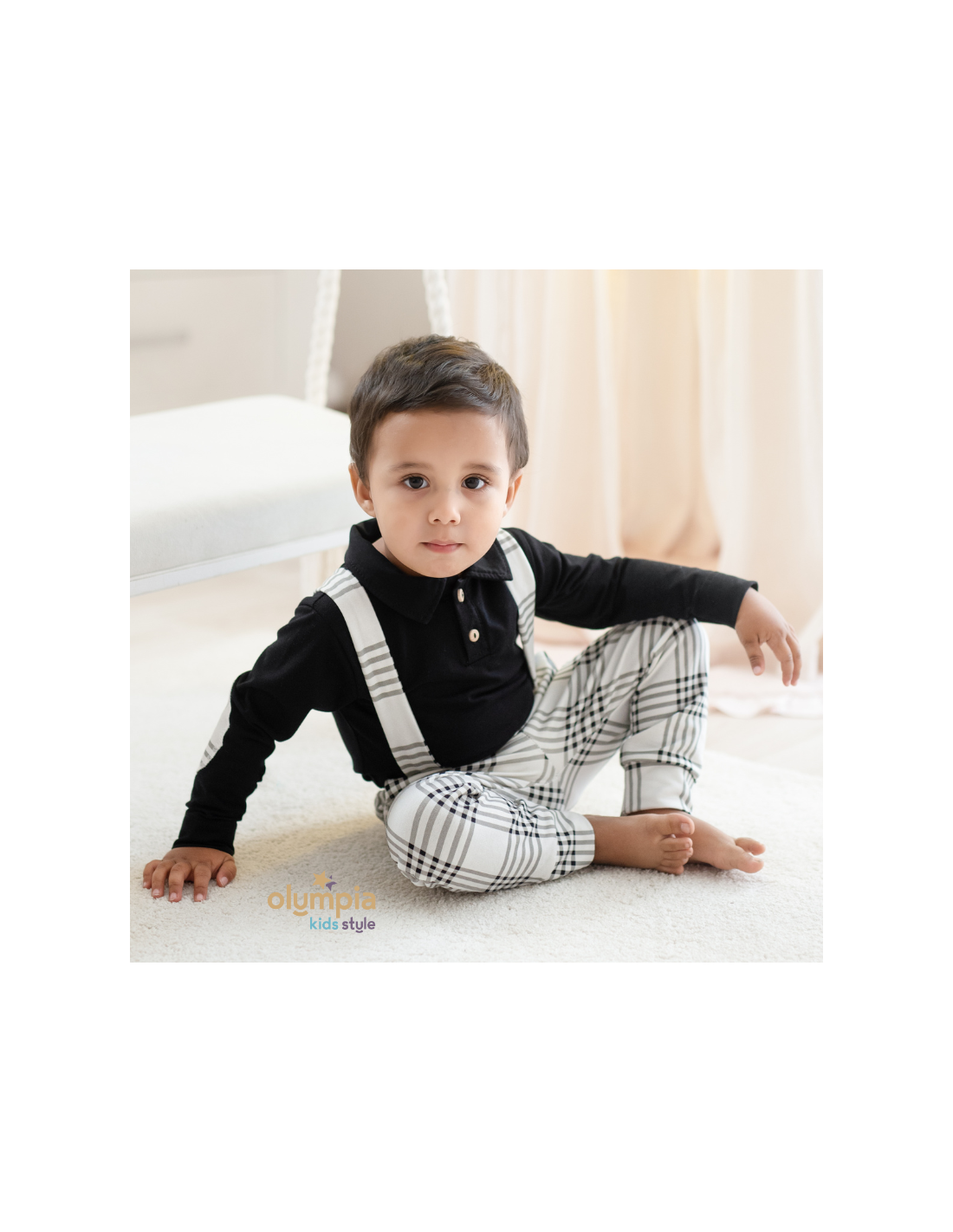 Komplet niemowlęcy bawełniany z kołnierzykiem – bluzka i spodenki z szelkami