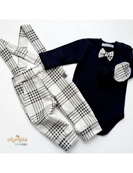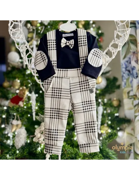 Stylowy i wygodny komplet dla niemowlaka, idealny na wyjątkowe okazje oraz codzienne wyjścia. Zestaw składa się z klasycznego body z długim rękawem oraz spodni z szelkami w ponadczasową kratę. Całość tworzy elegancką, a jednocześnie bardzo komfortową stylizację.