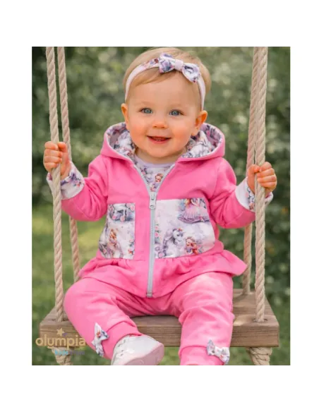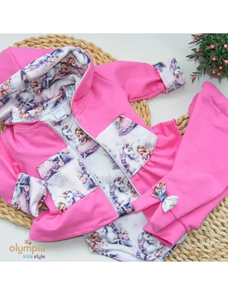 Bawełniany dres z katurem dla dziewczynki z baśniowym motywem, zapinany na suwak.