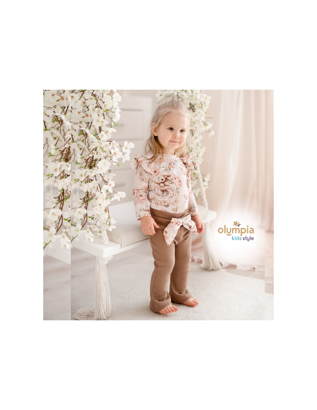 Odkryj wyjątkowy komplet dla dziewczynki od polskiego producenta, który łączy modę z komfortem. Ten zestaw składa się z body niemowlęce z długim rękawem, ozdobionej uroczymi falbankami oraz spodnie dzwony. Całość utrzymana w modnym, kwiatowym wzorze, który podkreśla styl i charakter. Materiał zawiera 95% bawełny oraz 5% elastanu, co zapewnia miękkość, elastyczność i pełną swobodę ruchów – idealne połączenie na chłodniejsze dni.