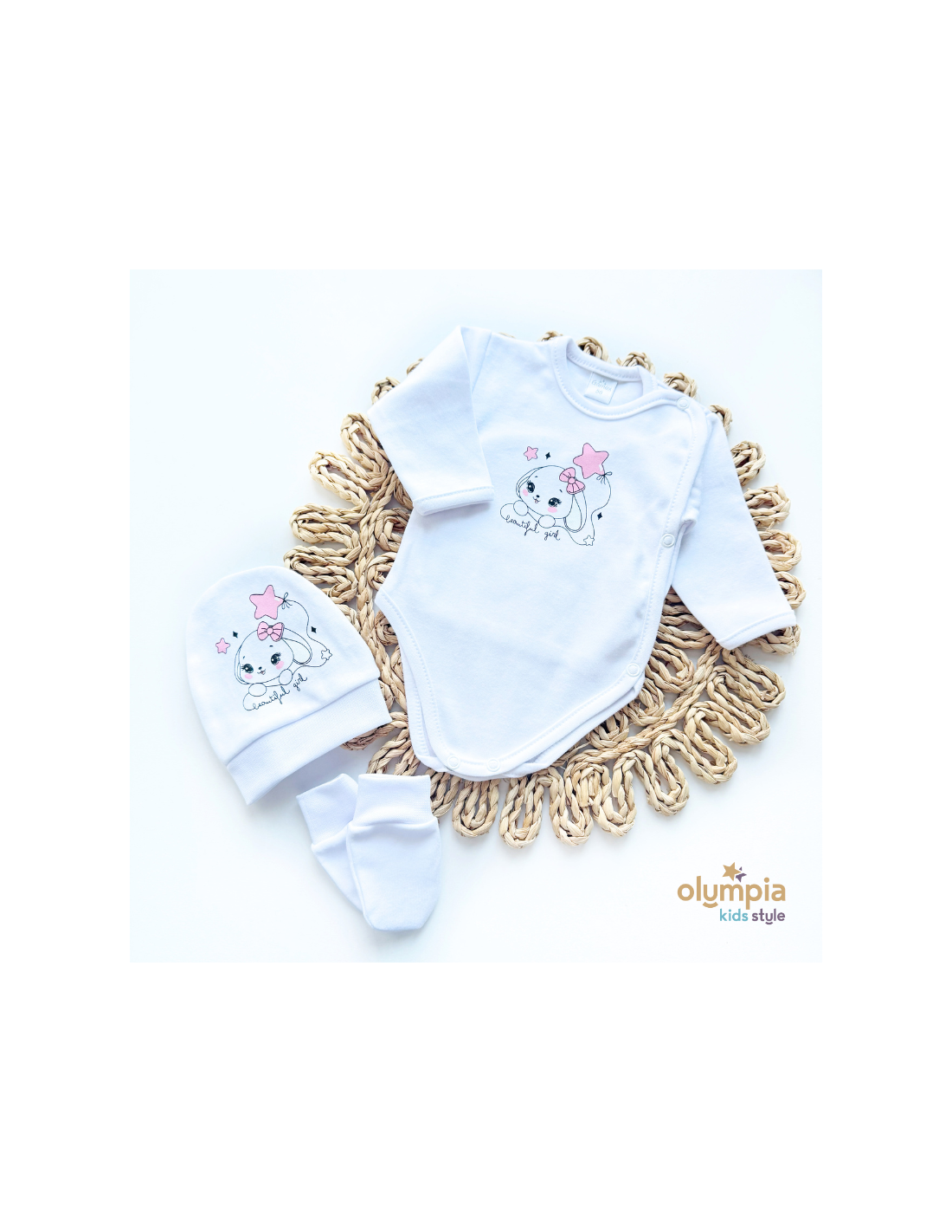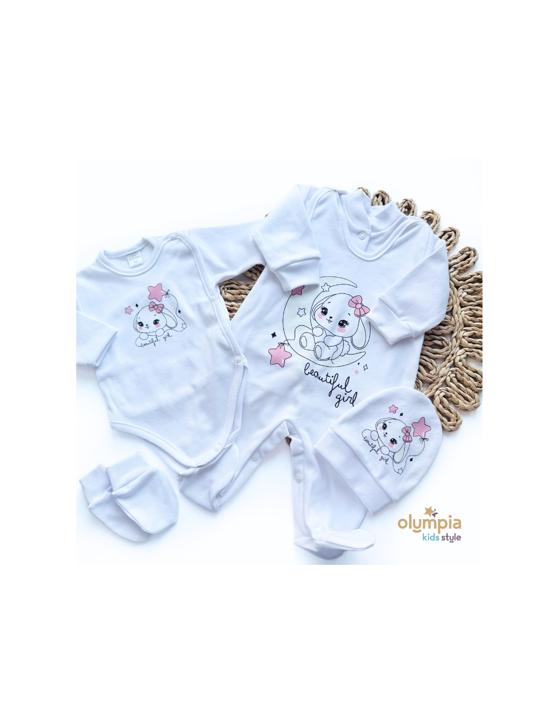 Wyprawka dla niemowlaka 5-cz biała z różem
