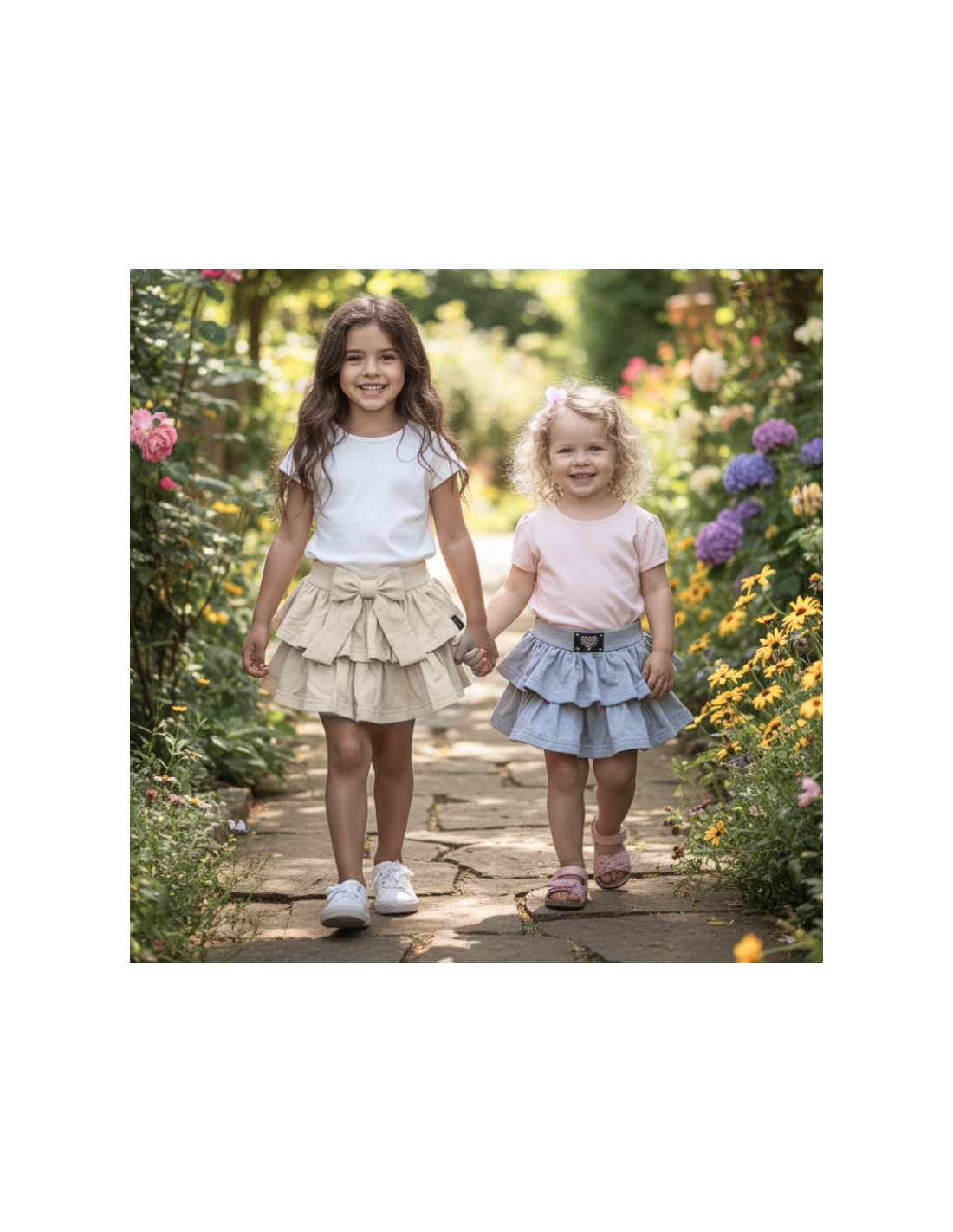 MEGA LOOK - Spódniczka z hiszpańskimi falbankami ozdoba kokardą i naszywką na przodzie sprawi, że Twoje dziecko olśni wszystkich