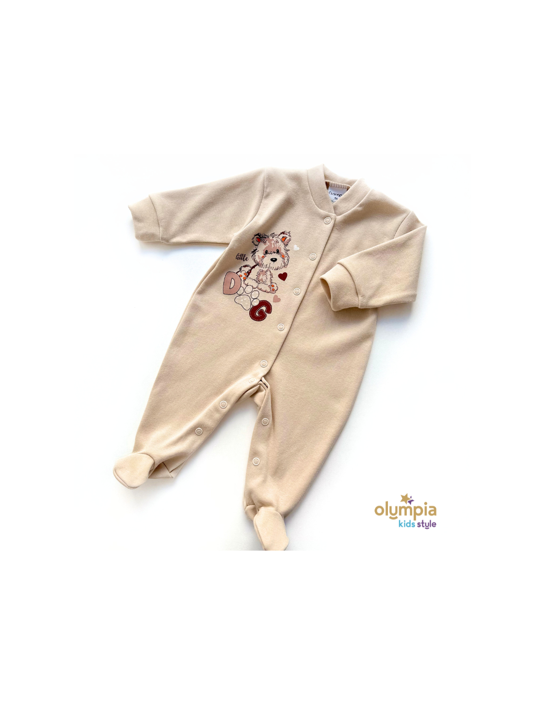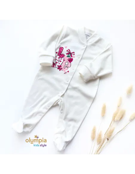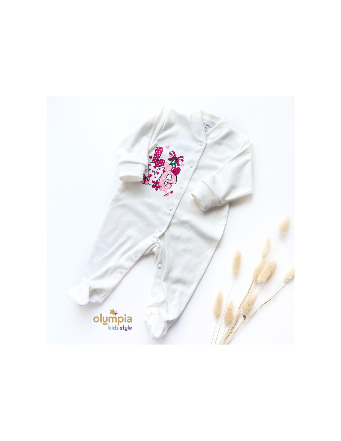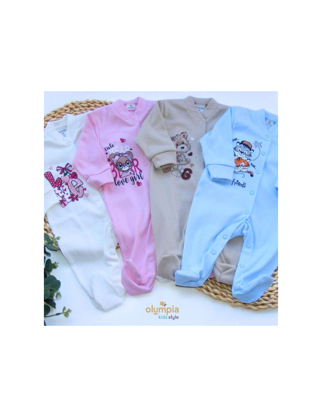 Bawełniany pajac niemowlęcy z długim rękawem ze stopkami ze 100% bawełny.