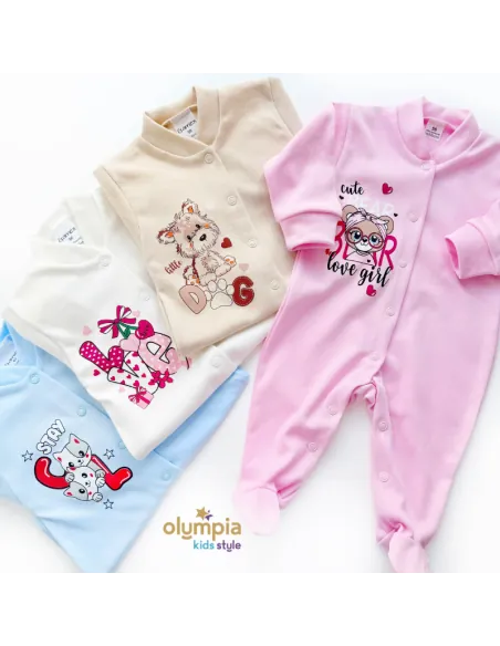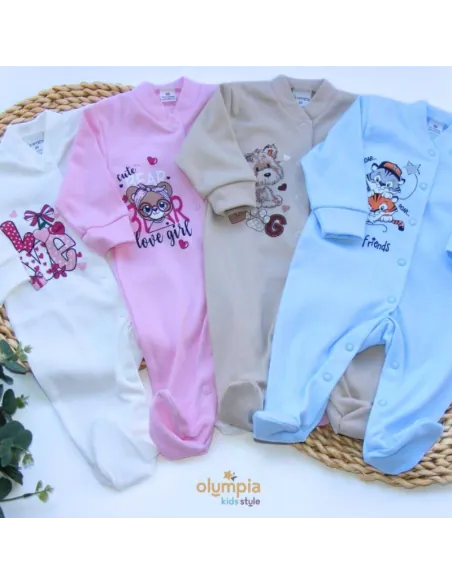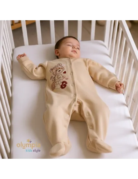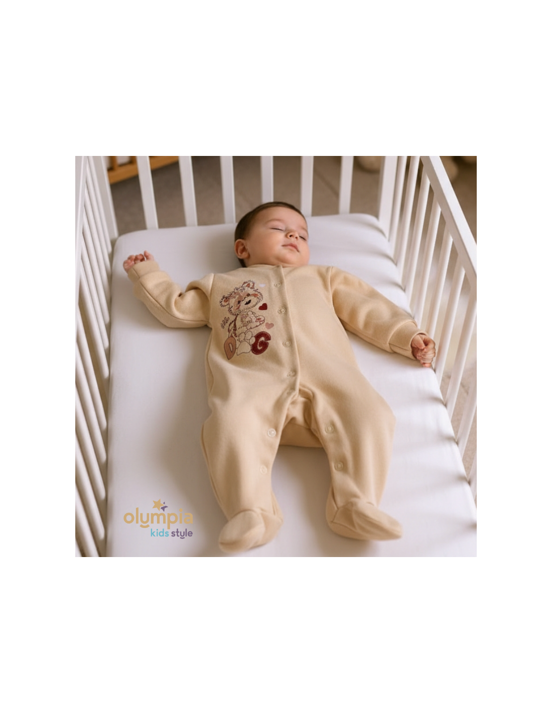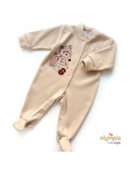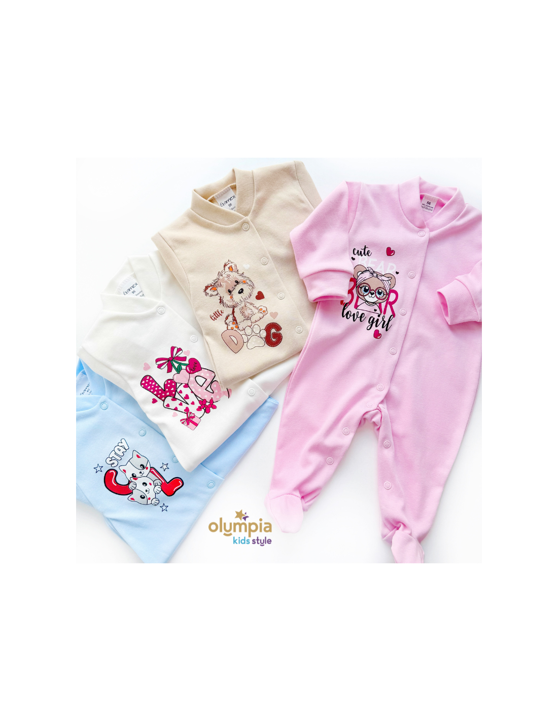 Bawełniany pajac niemowlęcy z długim rękawem ze stopkami ze 100% bawełny.