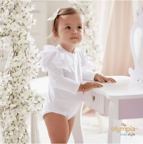 Bawełniane body z długim rękawem z  podwójną falbanką