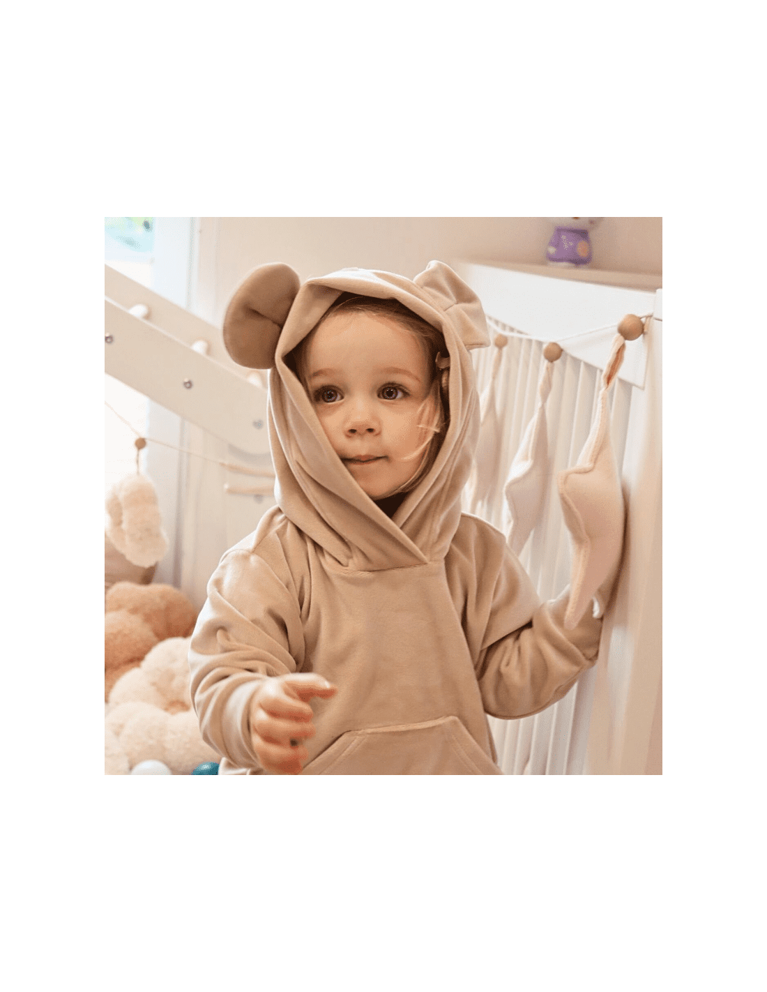Model klasyczny, bardzo wygodny, zakładany przez głowę z kapturem ozdobnym uszkami